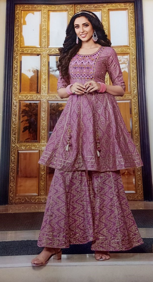 Cotton Mirror Work Yolk Kurta Palazzo Set